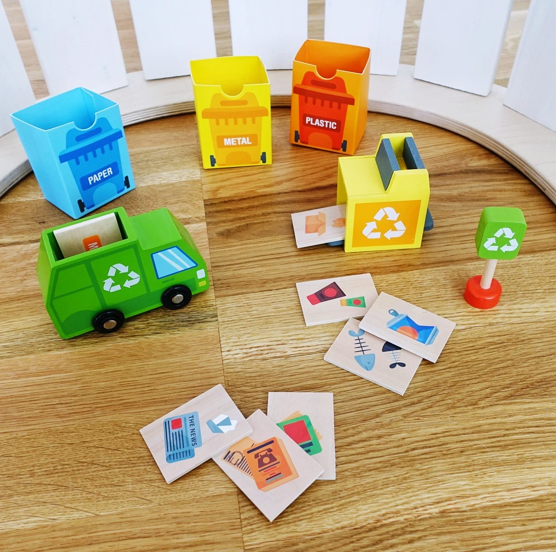 Hra s poslaním - triedenie, ktoré baví! Predstavte deťom hru, ktorá je viac než len zábavou: tento drevený set od Tooky Toy učí triediť odpad, starať sa o prírodu a zároveň rozvíja jemné zručnosti. Deti sa stanú malými ochranármi planéty vo svojom vlastnom recyklačnom centre plnom výziev a farieb.