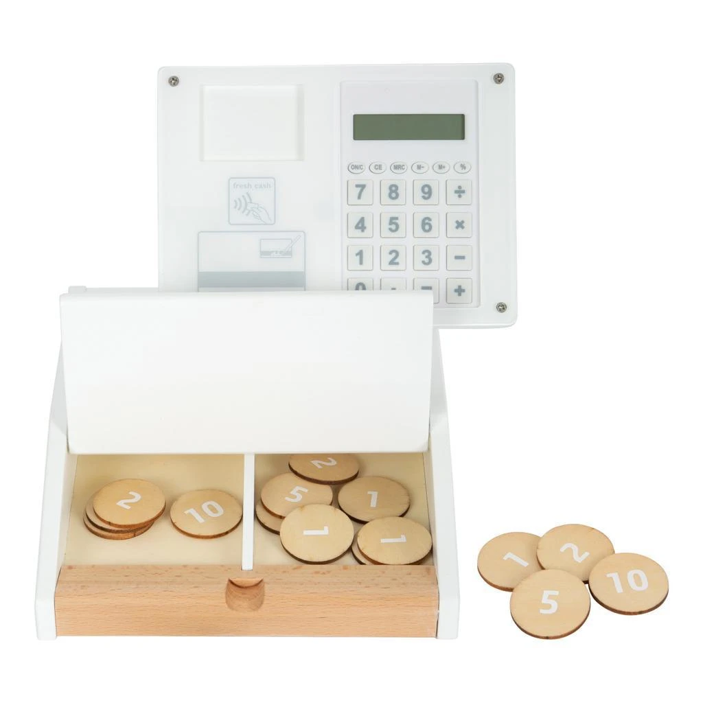 Krásna a moderná pokladňa z dreva sa bude perfektne hodiť do detských predajných stánkov.