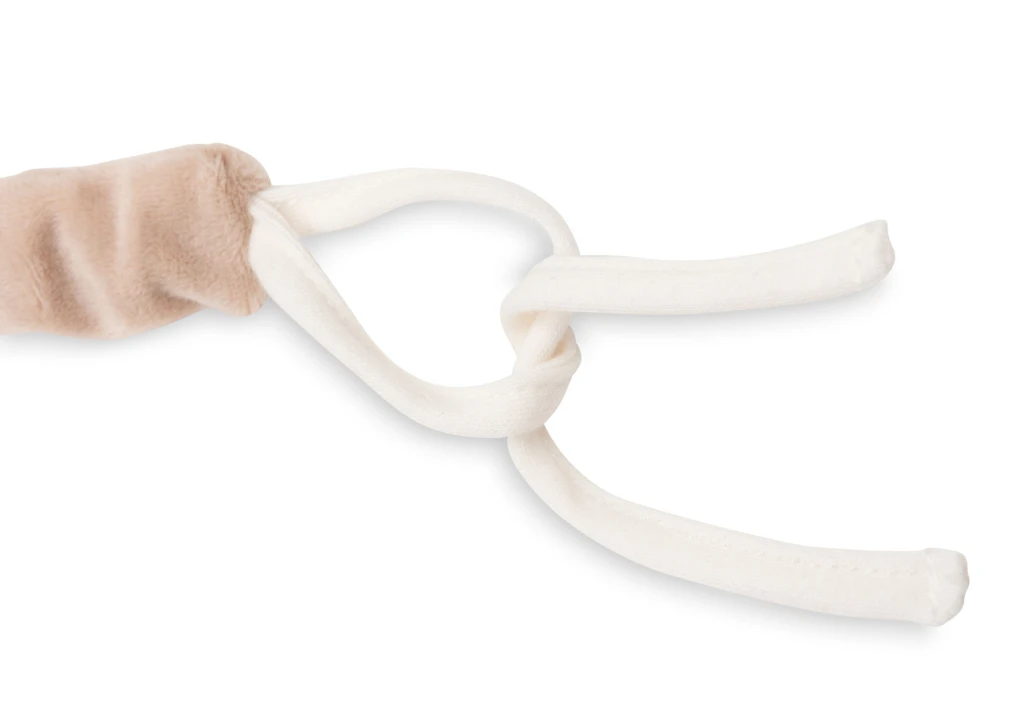 Reťaz s hračkami ľahko pripevníte ku kočíku aj autosedačke vďaka viazacím šnúrkam.