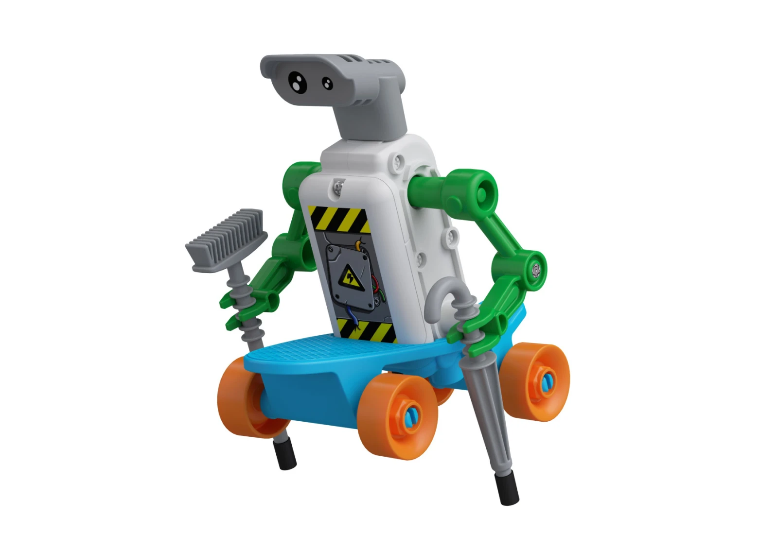 Obsahuje dieliky na zloženie robota, nálepky. Slovenský návod na stiahnutie v digitálnej podobe-QR kód na krabici av návode.