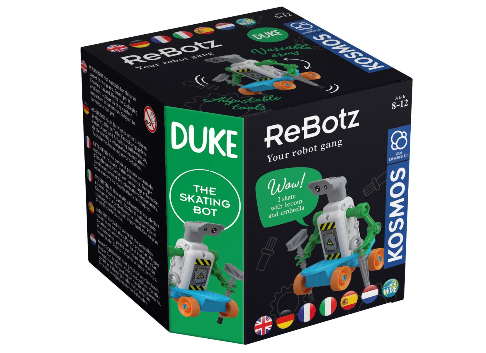 Robot Duke jazdiaci Kozmos je odvážny vesmírny dobrodruh, ktorý s eleganciou a odhodlaním brázdi nekonečné diaľky, objavuje nové svety a inšpiruje každého, kto sa s ním vydá na cestu medzi hviezdy.