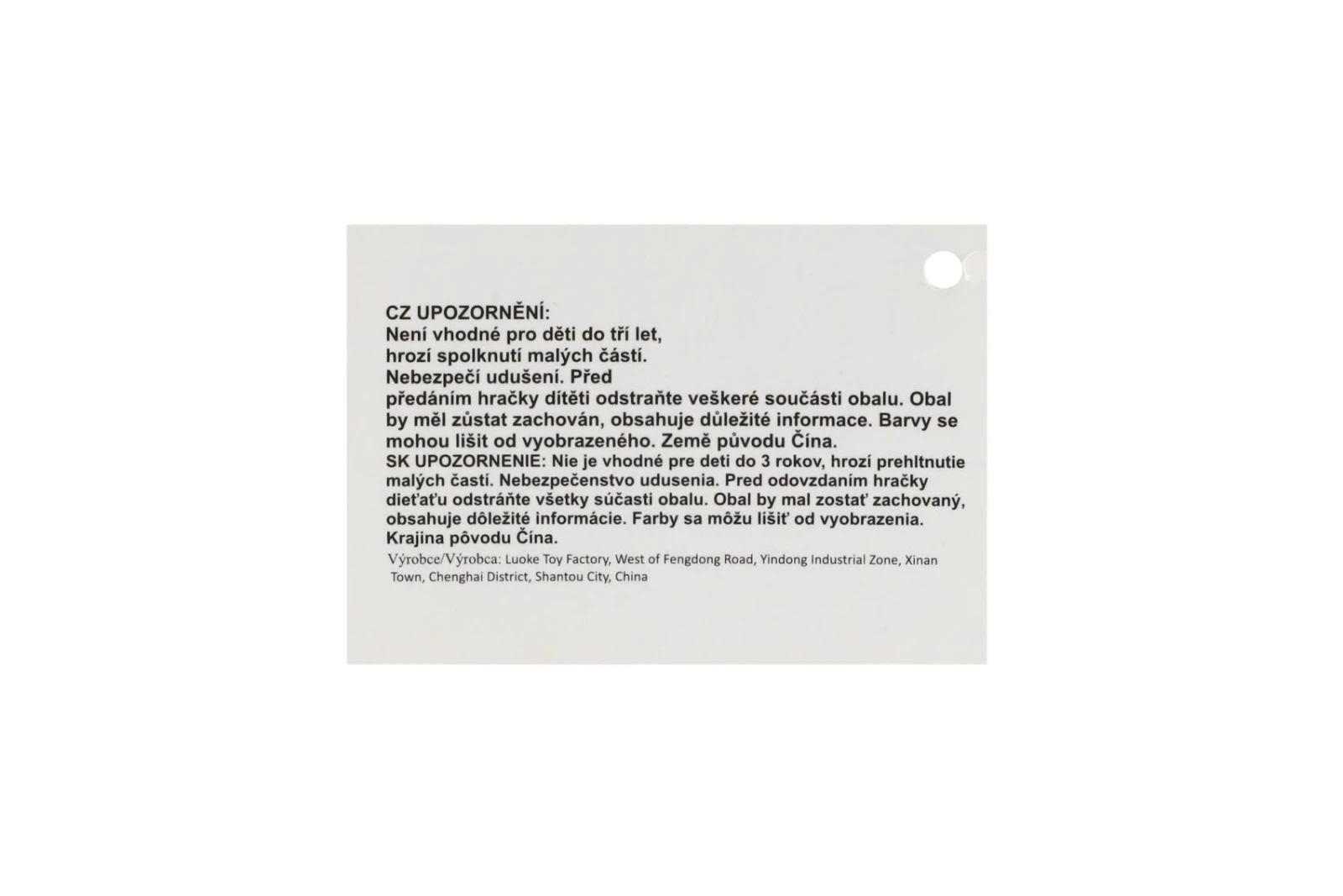 | Materiál hračky | plastové |