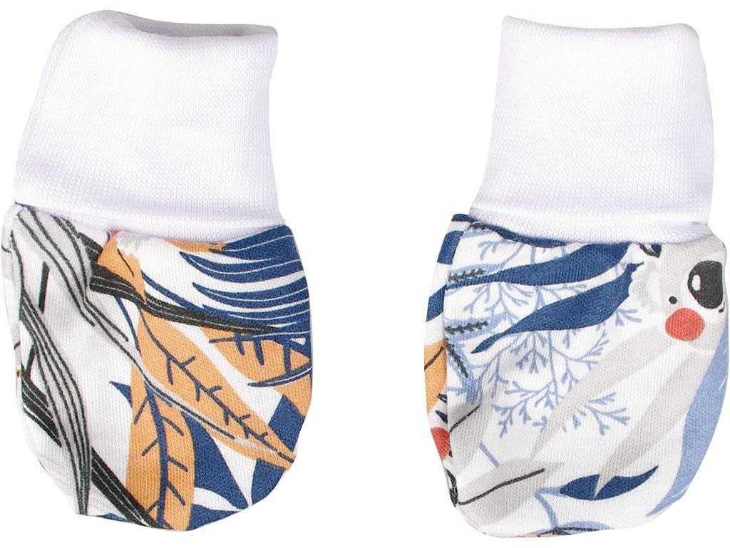 Bezpalcové rukavičky pre novonarodené bábätko. Rukavičky sú vyrobené zo 100% bavlny, pružný náplet je 95% bavlna a 5% lycra.