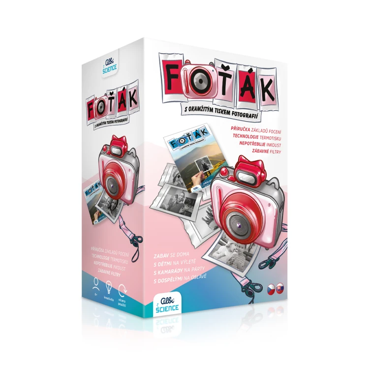 Vyfotené fotografie sa uložia na 16 GB pamäťovú kartu a zároveň sa môžu ihneď vytlačiť. Jednoduchá obsluha fotoaparátu zabaví deti od 6 rokov, ktoré si môžu vďaka priloženým samolepkám foťák ozdobiť podľa svojho.