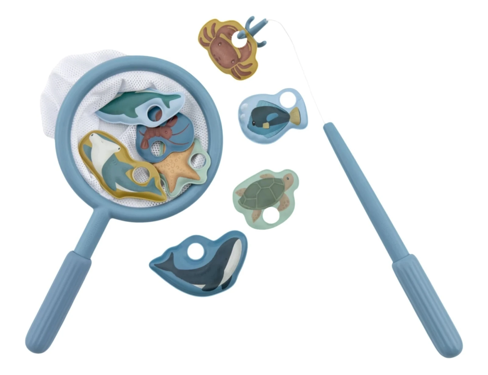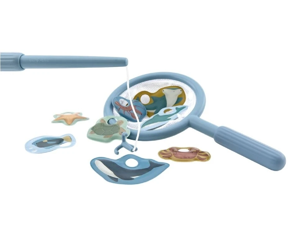 Obsahuje rybársky prút, sieťku a osem plávajúcich figúrok morských živočíchov, ktoré deti môžu počas kúpania loviť z vody. Hra podporuje sústredenie, koordináciu pohybov a prirodzenú zvedavosť. Rukoväte prútu aj sieťky je možné ľahko odskrutkovať, čo uľahčuje skladovanie a prenášanie. Ideálny spôsob, ako spojiť hru s učením a spestriť každé kúpanie.