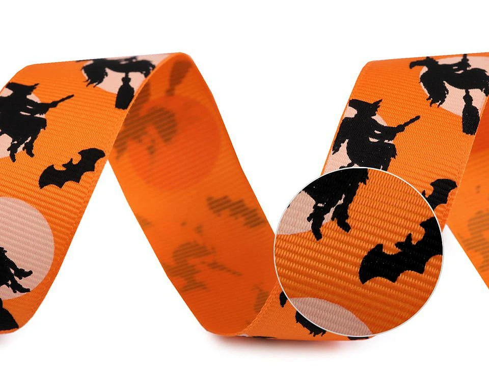 Rypsovú stuhu s halloweenskym dizajnom oceníte pri aranžovaní. Potlač je jednostranná.