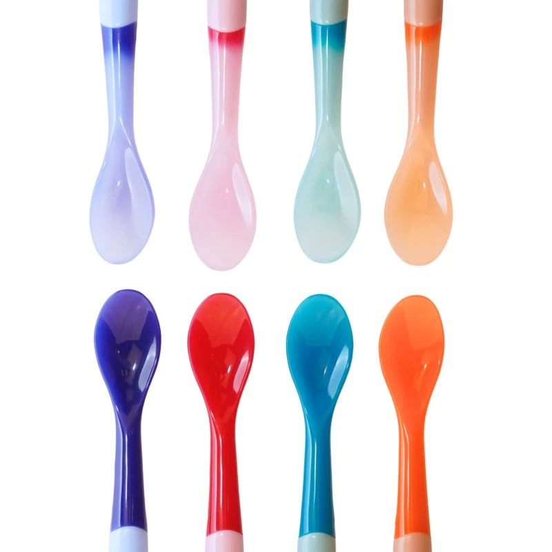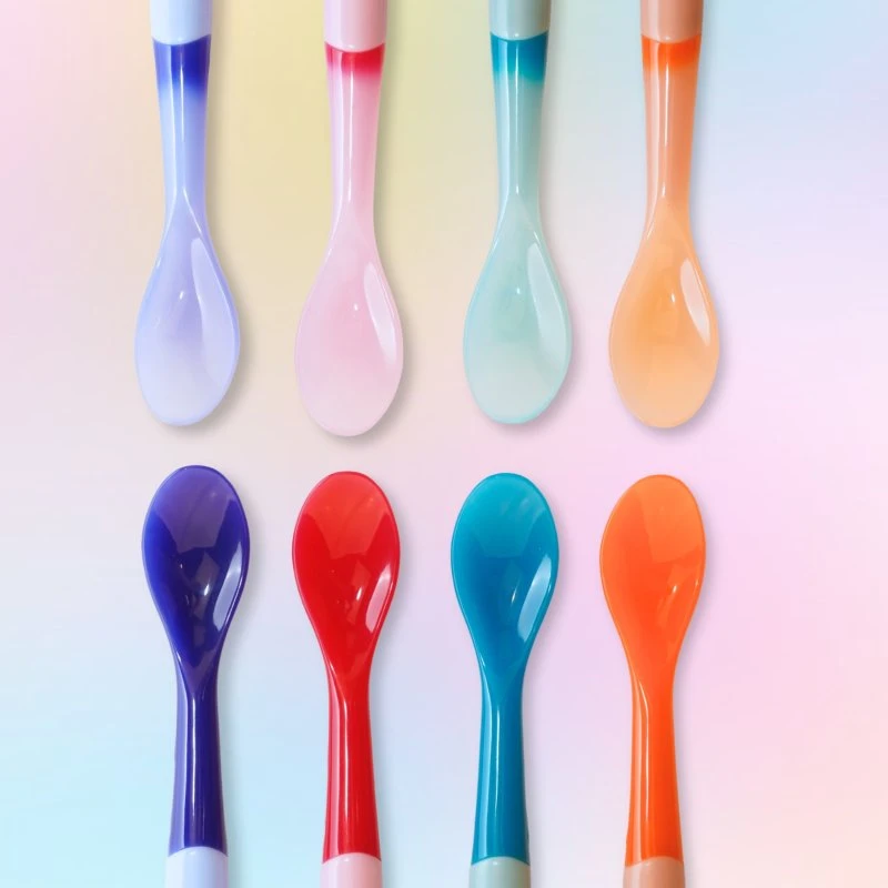 Sada termolyžičiek, ktoré zmenia farbu, keď je jedlo príliš horúce. Sú vyrobené z mäkkého materiálu bez BPA, ktorý je šetrný k ďasnám a bezpečný na každodenné použitie. Sú ľahké, odolné a ľahko sa čistia, takže sú perfektnou voľbou pre bezstresové kŕmenie doma aj na cestách.