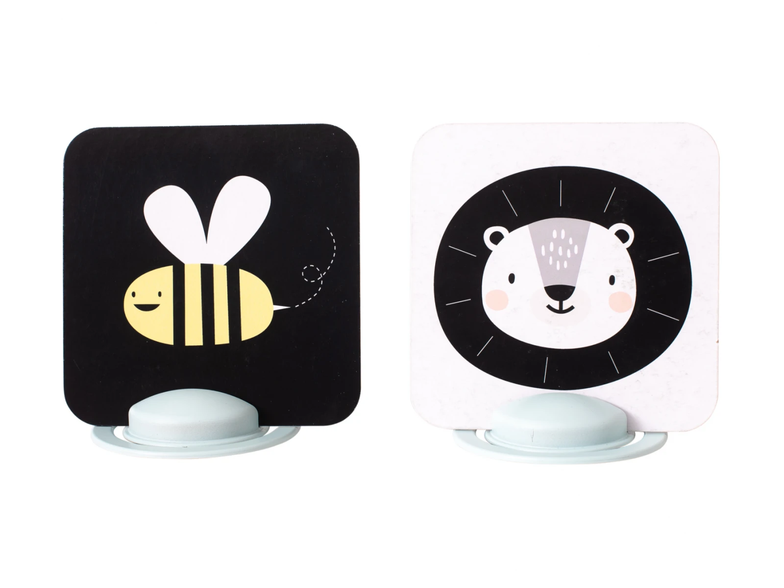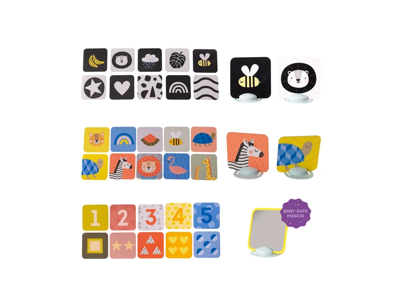 Sada obsahuje dva stojančeky, bezpečné zrkadlo a 15 obojstranných kariet s obrázkami.