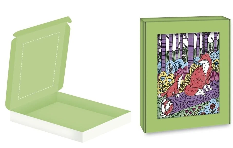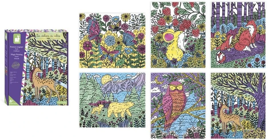 Súčasťou tejto sady je 6 magických malieb. Produkt s lesnou tematikou zobrazuje roztomilé zvieratká v ich divokých biotopoch! Naučia sa dávať pozor, aby sa farby navzájom nemiešali. Vysvetľujúca brožúrka im pomôže uviesť ich krásne obrazy do života, krok za krokom! A to nie je všetko... Krabica sa premení na rám, ktorý zarámuje vaše nádherné výtvory! Dokončenie každého obrázku trvá približne 1 hodinu. Táto aktivita rozvíja jemnú motoriku a trpezlivosť.