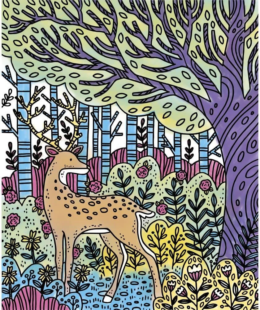Obsah: 6 obrázkov lesných zvieratiek na vyfarbenie a vodou plniteľné pero.