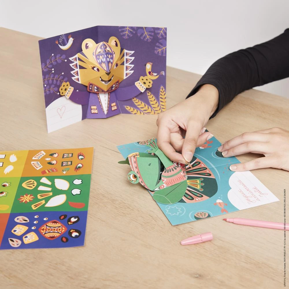 Pohľadnica/karta s praskajúcim zvieraťom je klasika všetkých čias! Janod to vylepšil touto sadou, z ktorej môžete vyrobiť a zdobiť 6 kariet!