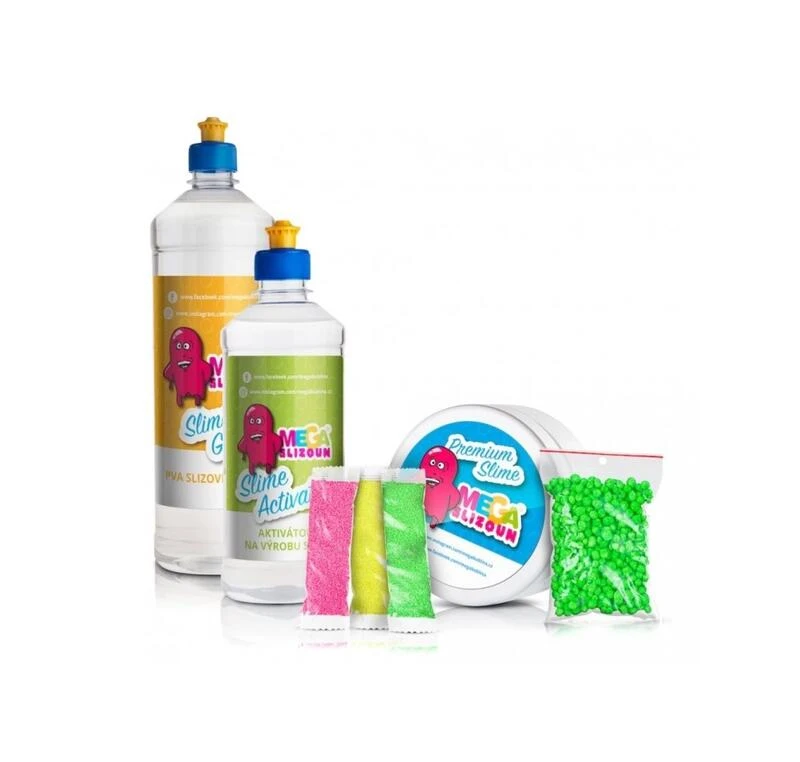 Sada Megaslizoun BEZ MIKROPLASTOV vám umožní vyrobiť až 750 ml dokonale pružného a zábavného slizu. Výroba je jednoduchá a bezpečná, sliz má antistresové účinky a podporuje detskú fantáziu, rozvoj jemnej motoriky i zmyslového vnímania. Produkty Megaslizoun sú nezávadné, netoxické a vyrobené na báze vody - nemusíte sa báť mastných škvŕn ani poškodeného oblečenia. Megaslizoun spĺňa najprísnejšie európske normy bezpečnosti hračiek (smernica 2009/48/ES, REACH). Na trhu je od roku 2018, drží zápisy v Českej knihe rekordov a spolupracuje s obľúbenými YouTubermi.