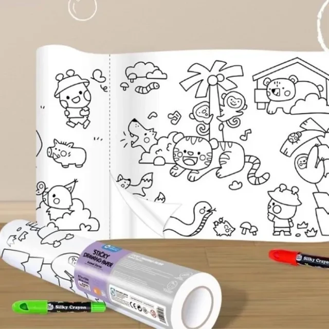 Samolepiaci podklad – nalepíš všade bez lepidla a deti môžu hneď tvoriť. Povrch zvládne pastelky, fixky aj farbičky - dobre drží farby a nepresakuje. Hrubý kvalitný papier, ľahko sa odlepuje bez poškodenia steny. Skvelé aj na párty, darček či skupinovú aktivitu.