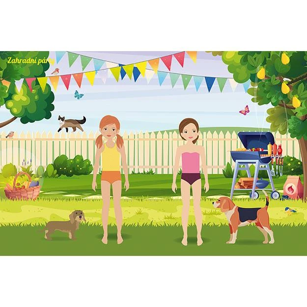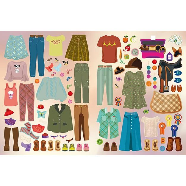 Samolepková knižka plná módy obsahuje 24 strán a viac ako 300 samolepiek šiat, topánok a doplnkov.