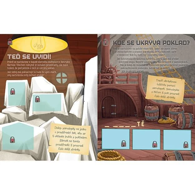 Zábavný samolepkový zošit obsahuje 24 strán plných zaujímavých úloh a samolepiek. Deti hľadajú, lúštia a pomocou samolepiek riešia prípad a hrajú tak únikovú hru.