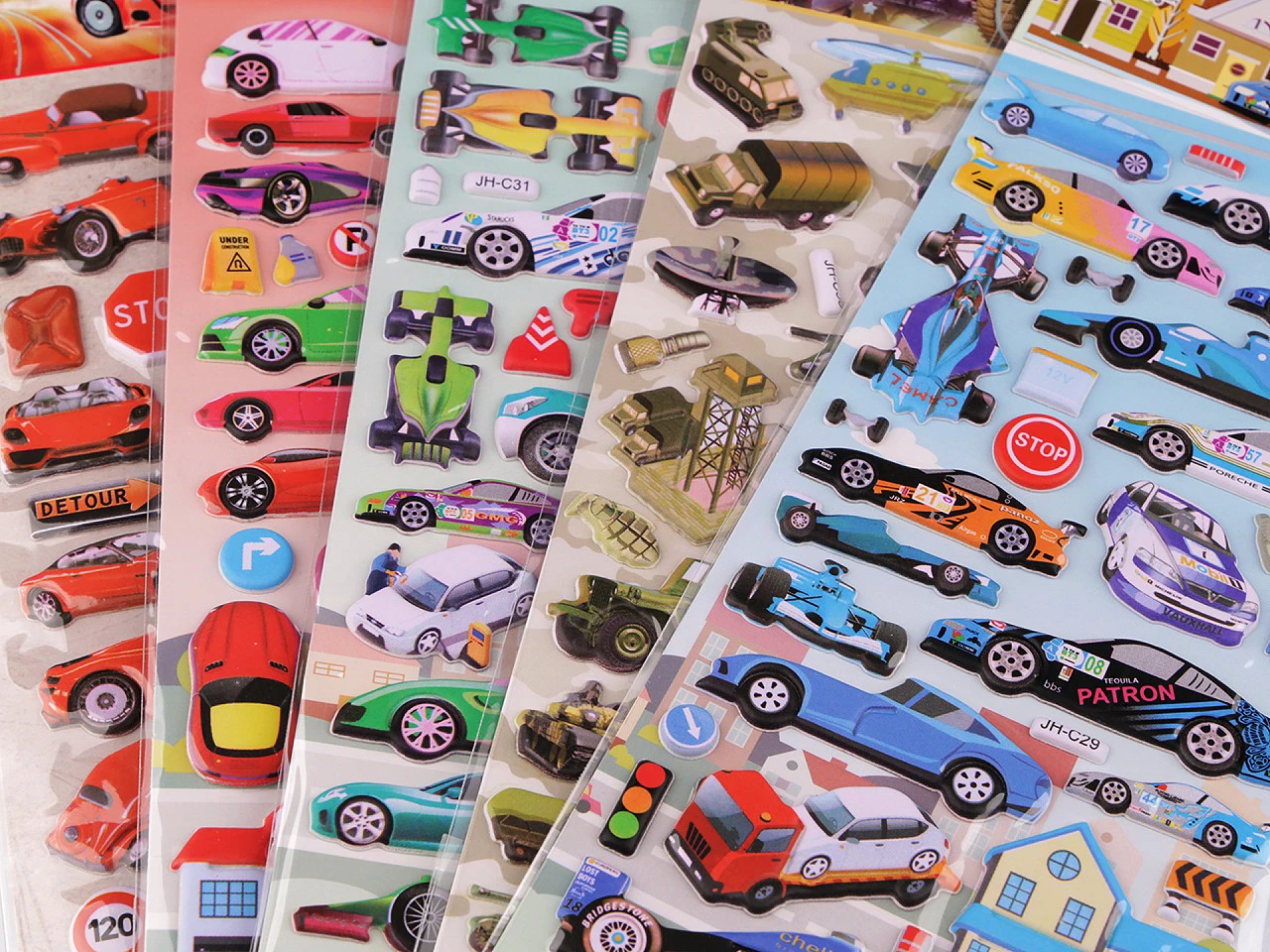 Samolepky s motívmi dopravných prostriedkov sú kvalitne spracované.