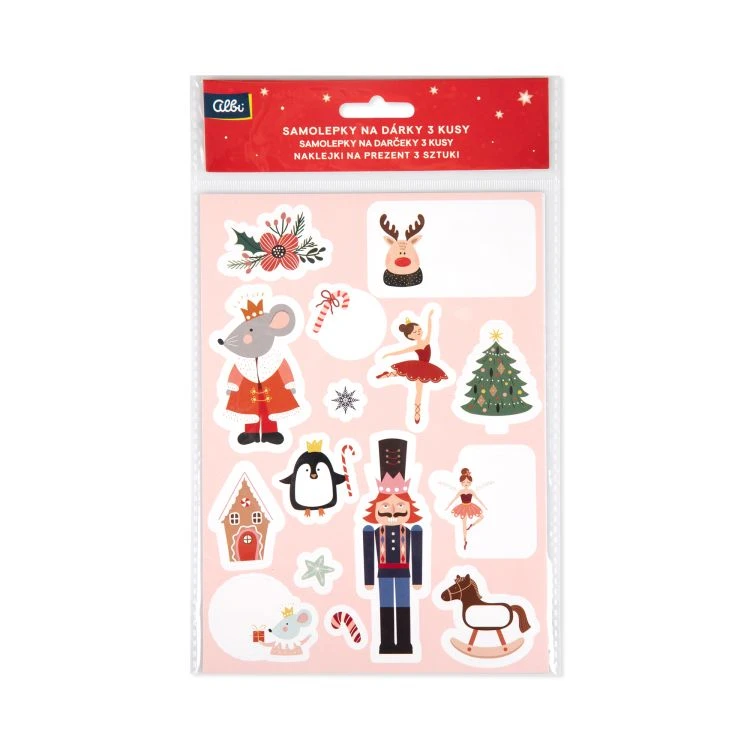 Sada 3 hárkov farebných samolepiek na darček. Časť z nich má priestor na vpísanie mena či venovania a druhá časť darček krásne dozdobí.