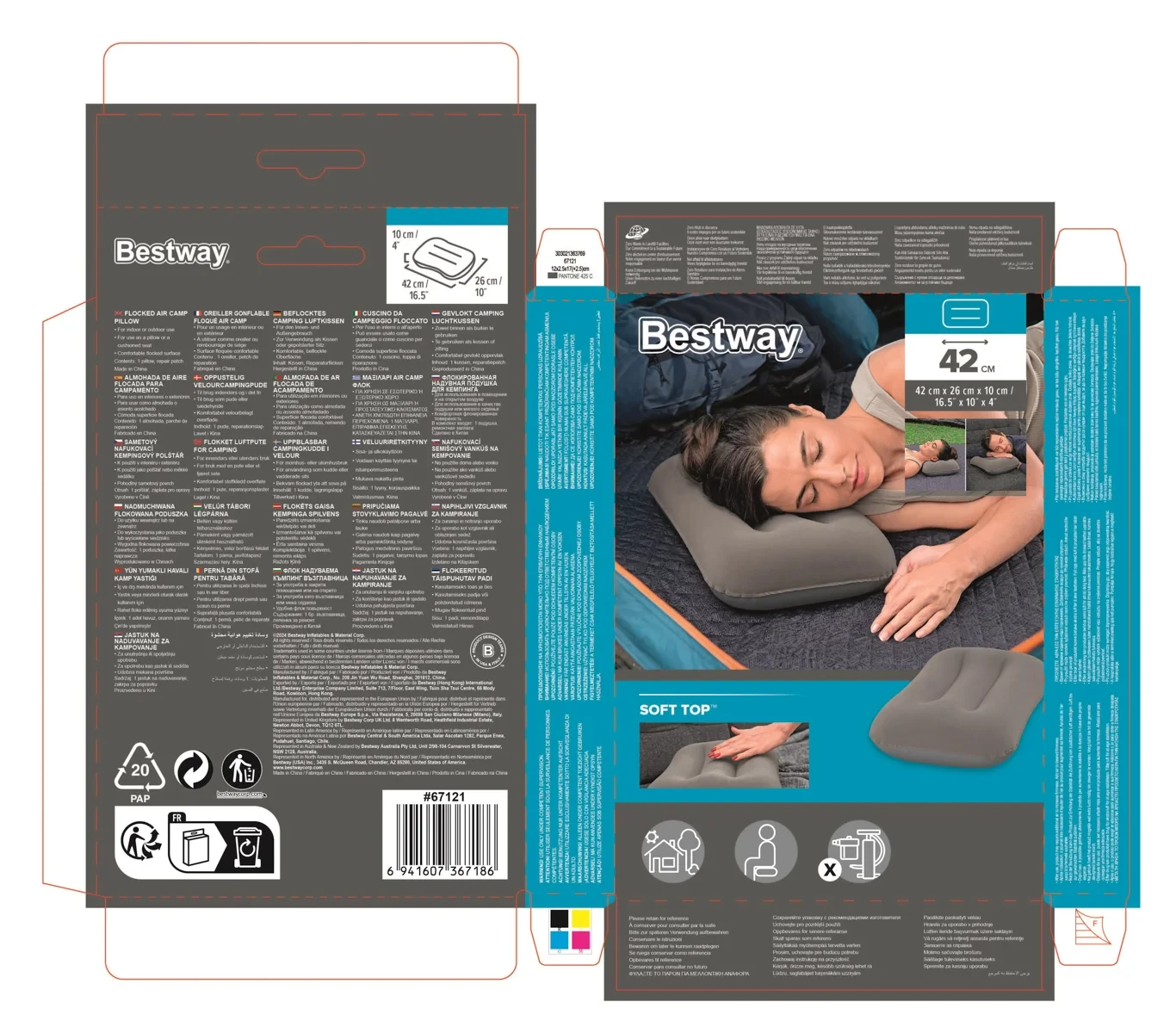 Pohodlie na cestách aj doma! Nafukovací vankúš Bestway s jemným semišovým povrchom je ideálnym spoločníkom na cestovanie, kempovanie aj relaxáciu. Poskytne vám pohodlnú oporu hlavy, ale skvele poslúži aj ako podložka na sedenie.