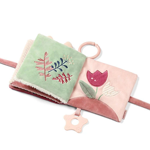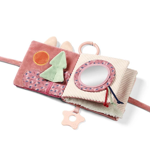 Jednotlivé stránky ukrývajú šuštiace prvky vydávajúce zaujímavé zvuky, jemnú hrkálkovú výplň podporujúcu trepanie, bezpečné zrkadlo pre objavovanie vlastného odrazu, farebné stužky a uzlíky na uchopovanie aj hryzátko masírujúce ďasná.