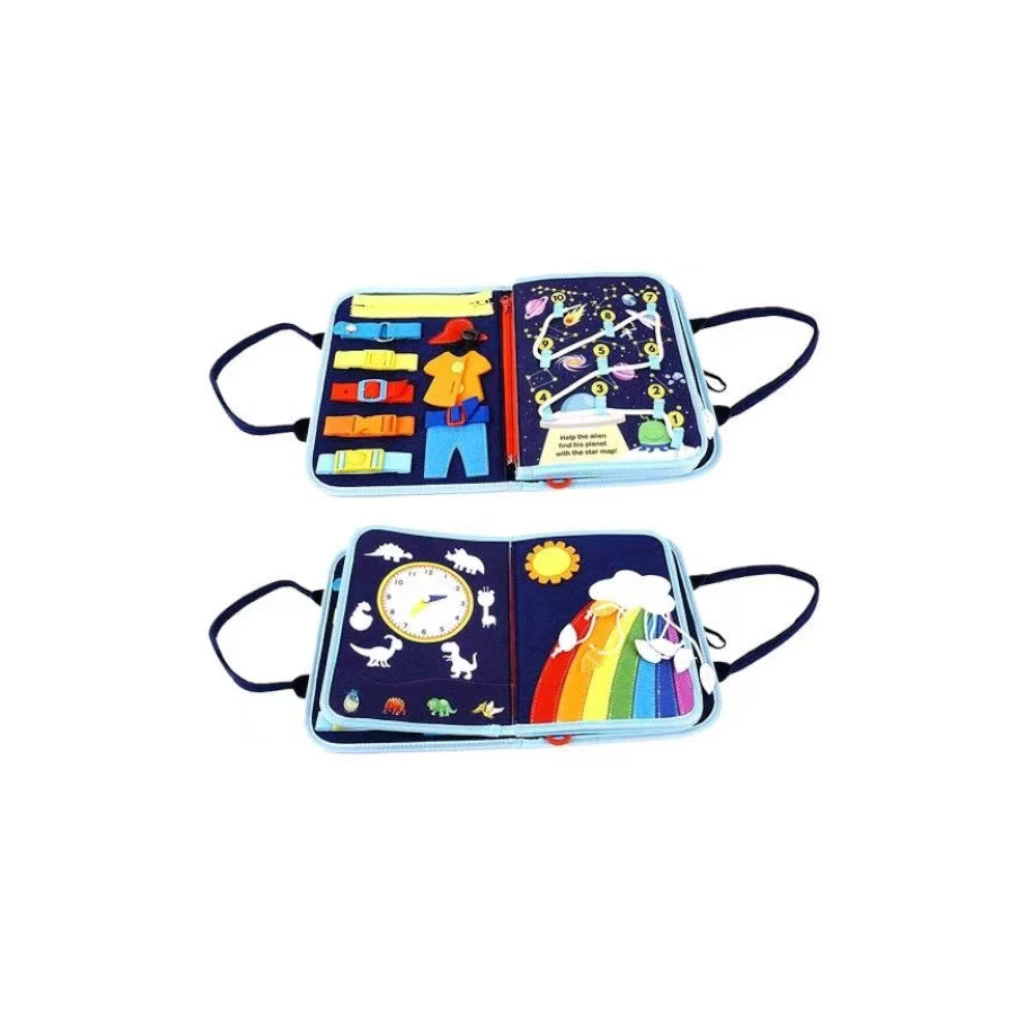 Objavte kúzlo senzorickej busy knihy, ktorá zábavnou formou rozvíja jemnú motoriku, logické myslenie, sústredenie aj zmyslové vnímanie Vášho dieťaťa. Kniha obsahuje rôznorodé motorické aktivity ako sú gombíky, pracky, zipsy, suché zipsy, šnúrky a ďalšie.