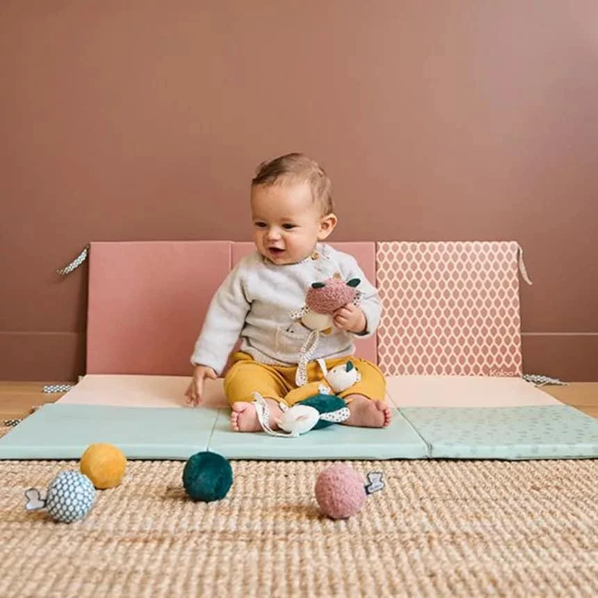 - Loptičky majú kontrastné farby a vzory špeciálne navrhnuté tak, aby rozvíjali zrak dieťaťa.