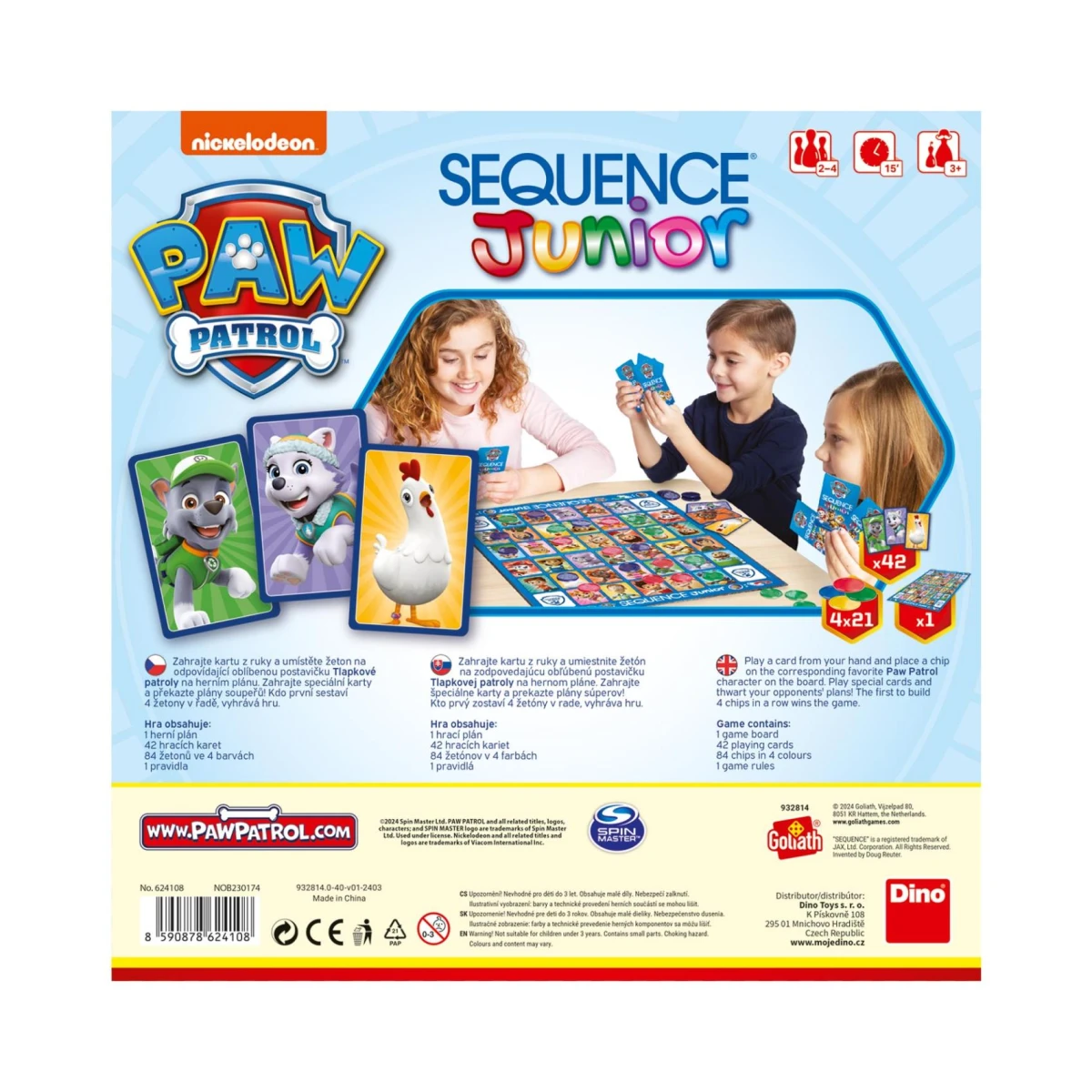 Obľúbená hra Sequence tentoraz pre najmensích hráčov s kamarátmi z Tlapkovej patroly. Zahrajte kartu z ruky a uistite žetón na zodpovedajúcu obľúbenú postavičku Tlapkovej patroly na hernom pláne.