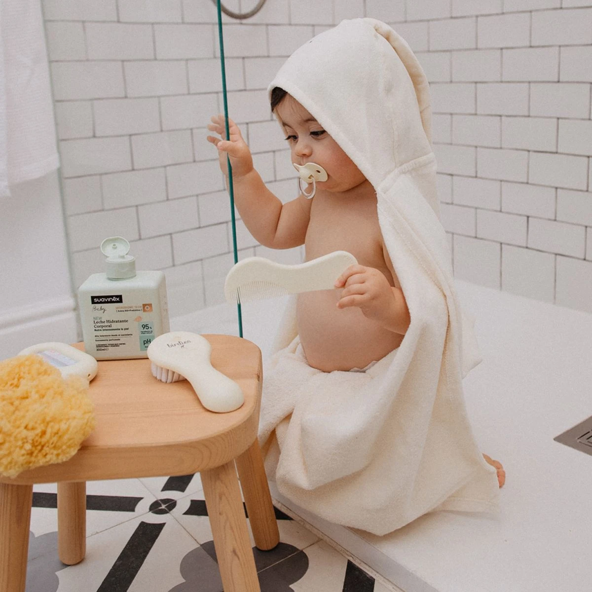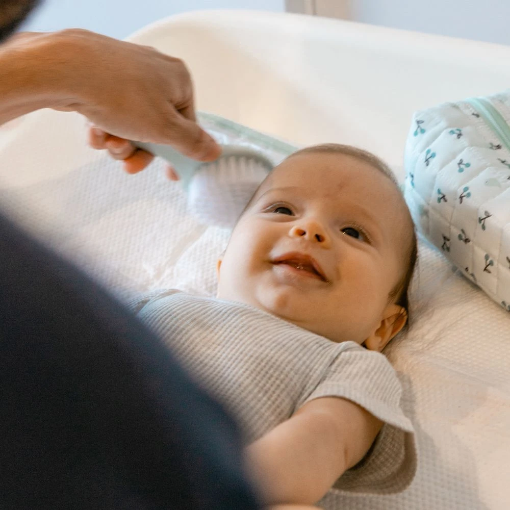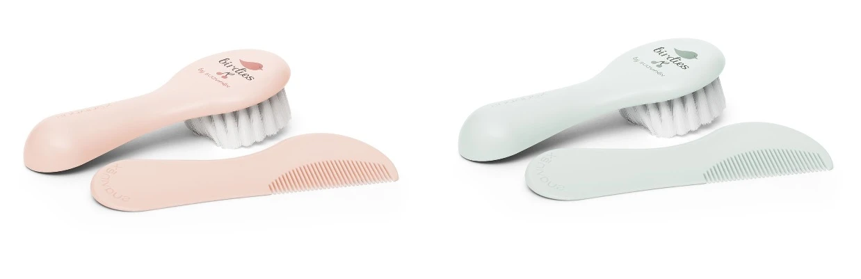 Zuby hrebienku majú zaoblené konce a vlákna kefky sú mäkučké a pružné. Ideálne pre jemnú detskú pokožku aj vlásky, vhodné pre bábätká od narodenia.