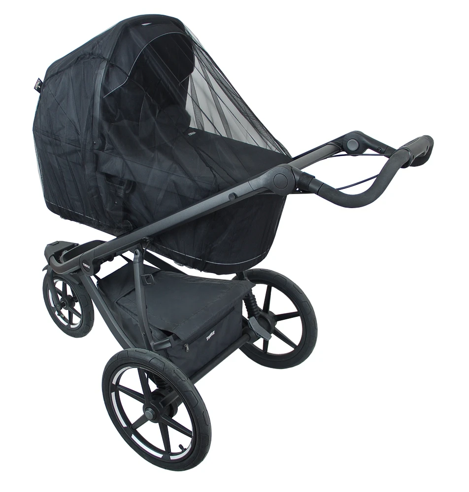 •použitie vysoko elastickej gumy, pomocou ktorej sieť tesne obopne kočík a zabráni tak preniknutiu hmyzu k dieťaťu