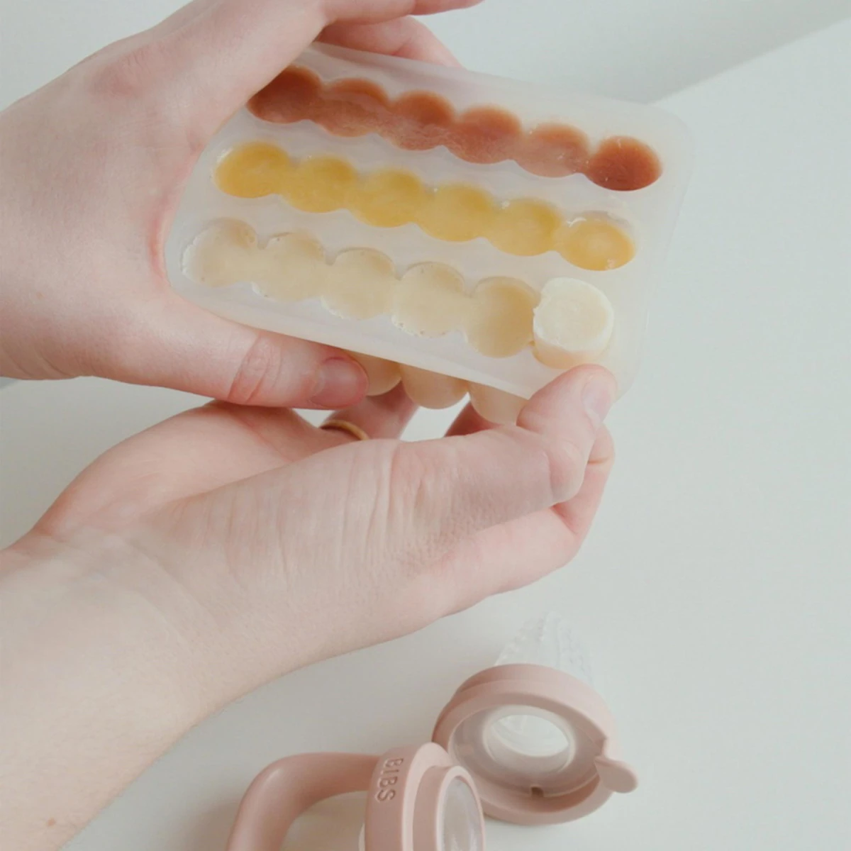 BIBS silikónová formička na mrazenie príkrmov je skvelý pomocník na upokojenie boľavých ďasien pri prerezávaní zúbkov. Naplňte ju materským či umelým mliekom, ovocnou šťavou, pyré, smoothies a vložte do mrazničky. Vytvorte perfektný tvar, ktorý vložíte do BIBS silikónového cumlíka na kŕmenie (v predaji samostatne).