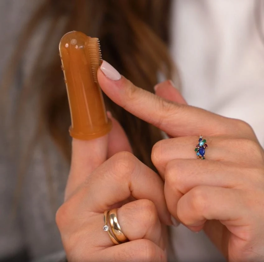 Prstová kefka je určená špeciálne na čistenie ústnej dutiny malých detí . Ak je vaše dieťa ešte príliš malé na to, aby používalo bežnú zubnú kefku, odporúča sa čistiť jazyk, ďasná a zuby prstovou kefkou. Má mäkké štetiny, ktoré sú ideálne na čistenie i masáž. Tiež upokojuje bolesť a znižuje svrbenie ďasien pri prerezávaní prvých zúbkov.