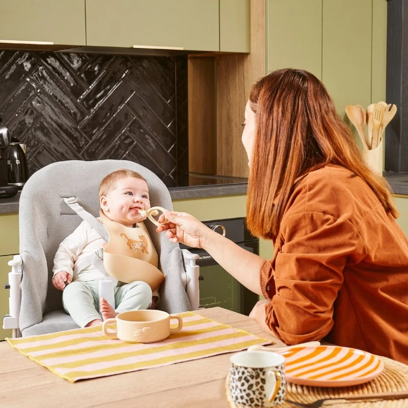 Špeciálne tvarovaná lyžička navrhnutá tak, aby uľahčila zavádzanie pevnej stravy a zároveň upokojila citlivé ďasná pri prerezávaní prvých zúbkov.