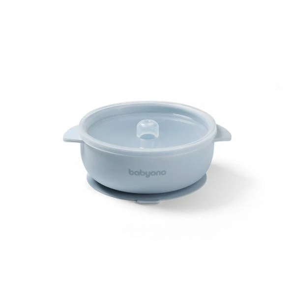 Silikónová miska s prísavkou a viečkom BabyOno je skvelým pomocníkom pri zavádzaní príkrmov aj v období, keď sa dieťa učí jesť samo. Vhodná na polievky, kaše, cestoviny, zeleninu, ovocie aj jogurty.