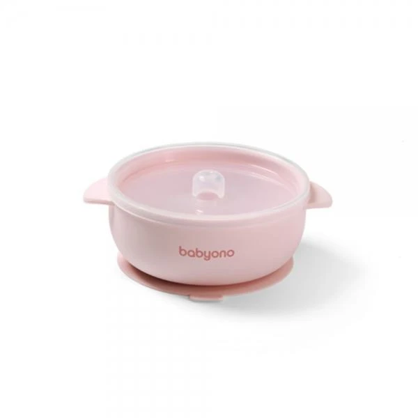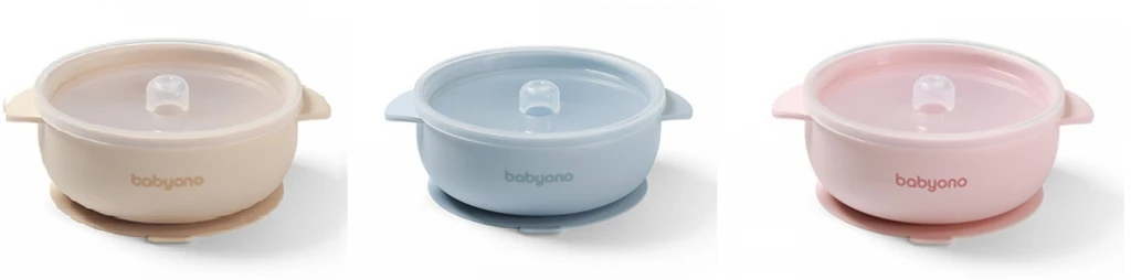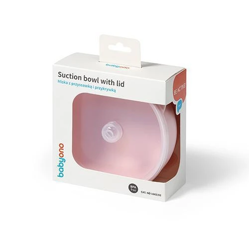 Silikónová detská miska s prísavkou a viečkom BabyOno – ideálna na zavádzanie príkrmov.