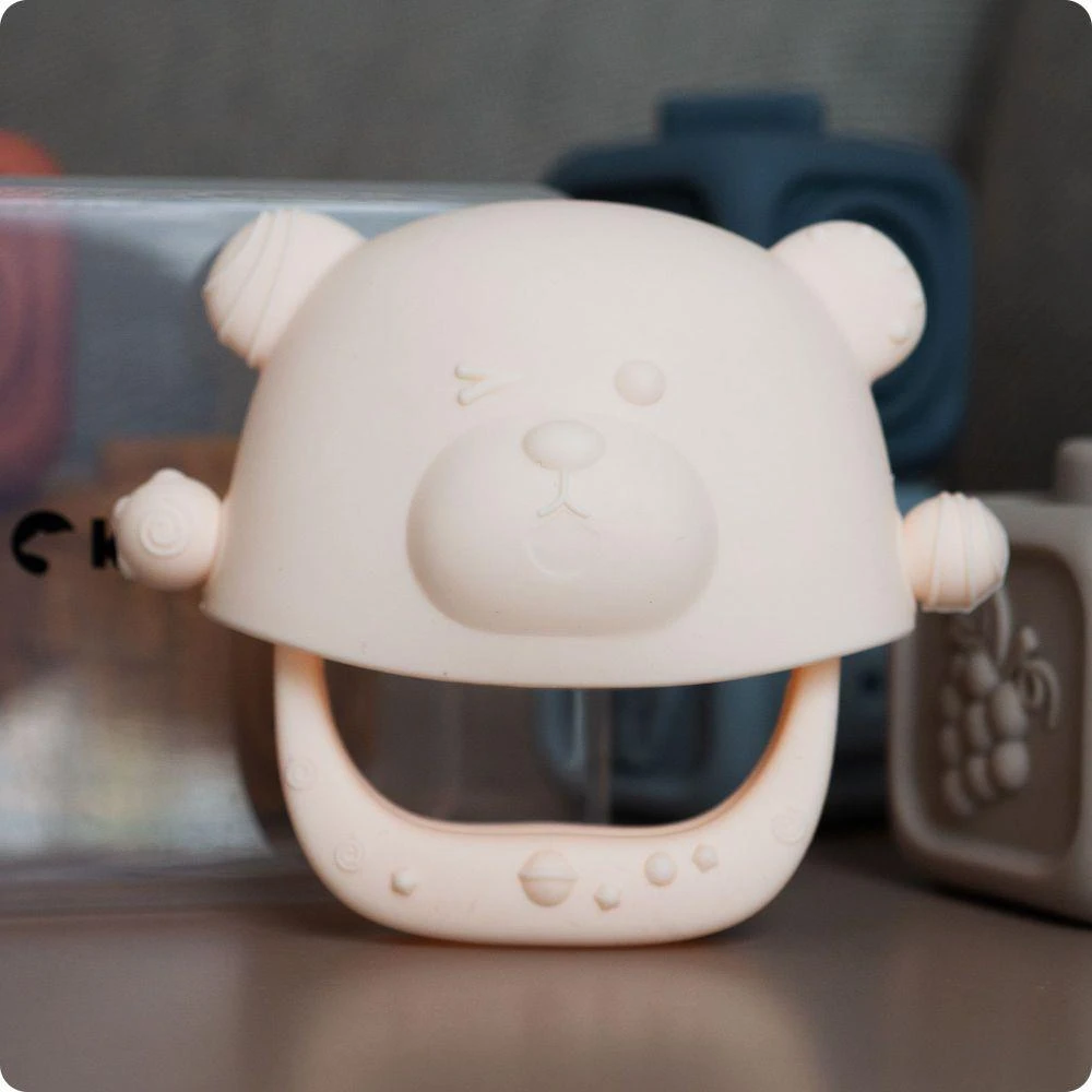 Hryzátko z lekárskeho silikónu je mäkké a zároveň pružné – ideálne na masáž citlivých ďasien. Pomáha zmierniť bolesť a svrbenie spojené s rastom prvých zúbkov. Pre väčší účinok ho môžete vychladiť v chladničke, čo prinesie dieťaťu okamžitú úľavu. Odstránením ochranného krytu v tvare medvedíka sa odkryje samotné hryzátko – zábavné, funkčné a hygienicky chránené.
