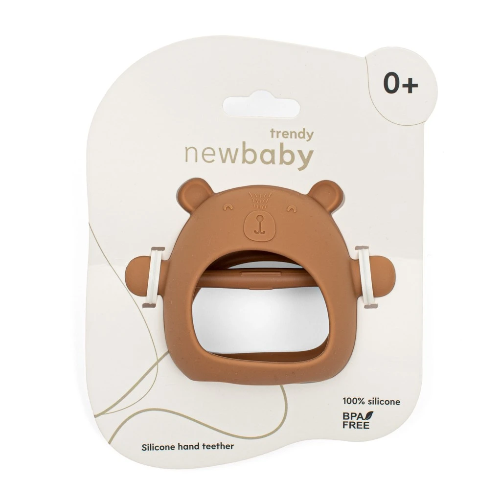 Hryzátko z exkluzívneho radu New Baby Trendy spája štýl, funkčnosť a bezpečnosť Jemná karamelová farba v minimalistickom prevedení dopĺňa praktický dizajn, vďaka ktorému sa hryzátko ľahko zmestí do malých detských rúk.