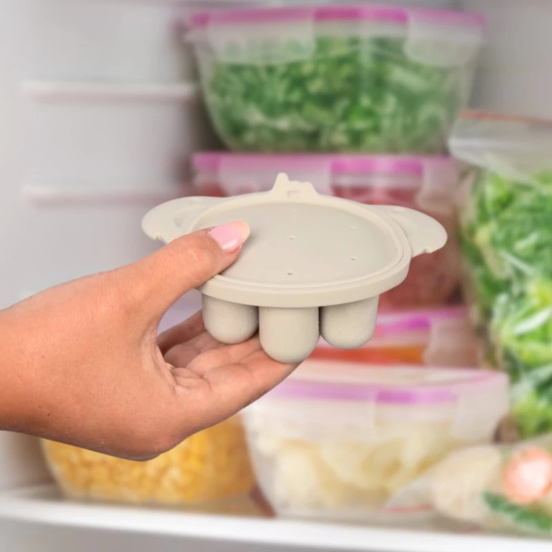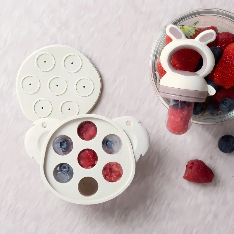 S týmto dávkovačom ľahko a počas chvíľky pripravíte zdravé a osviežujúce desiaty pre deti. Stačí ho naplniť čerstvým ovocím, pyré alebo dojčenským mliekom, dať zmraziť a vytvoriť prírodné kocky, ktoré perfektne pasujú do Bo Jungle Fruit Feederov.