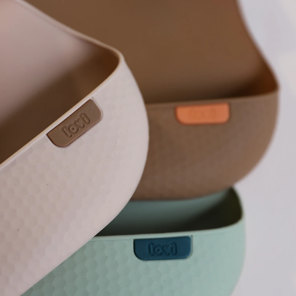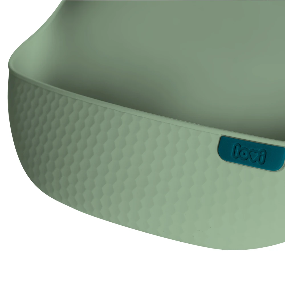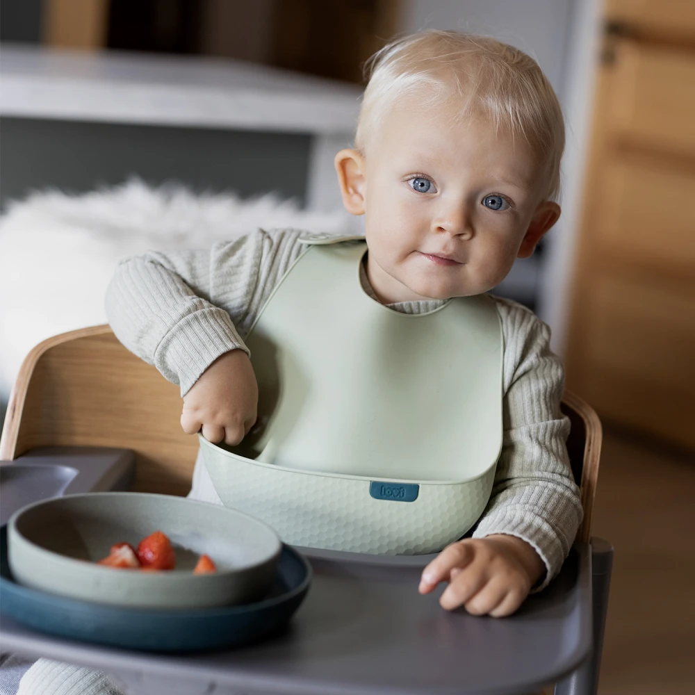 LOVI Silikónový podbradník s vreckom je veľkým pomocníkom pre rodičov - chráni pred nečistotami v čase, keď sa dieťa učí samostatne jesť. Je vyrobený z ľahkého, mäkkého a bezpečného silikónu. Pevné a hlboké vrecko zachytáva zvyšky jedla, pohodlne obopína bruško a zasahuje doširoka do bokov bábätka.