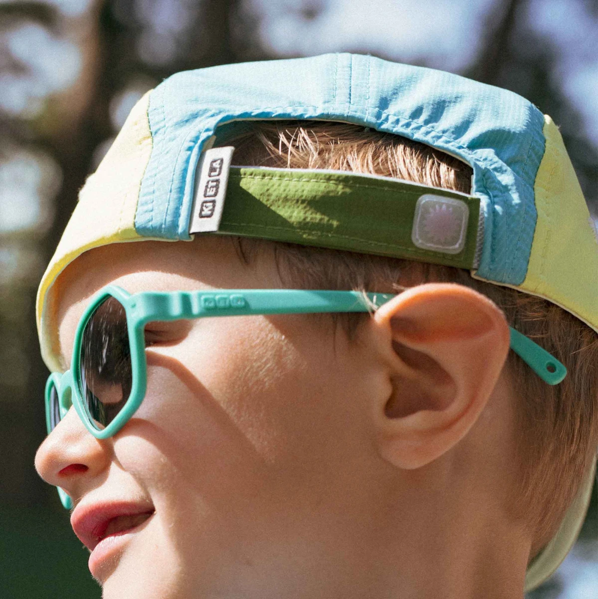 100% recyklovaný polyester s certifikáciou GRS (Global Recycled Standard). Nastaviteľný suchý zips na zadnej strane. Systém pripevnenia gumičky slnečných okuliarov ku šiltovke (2–4 roky).