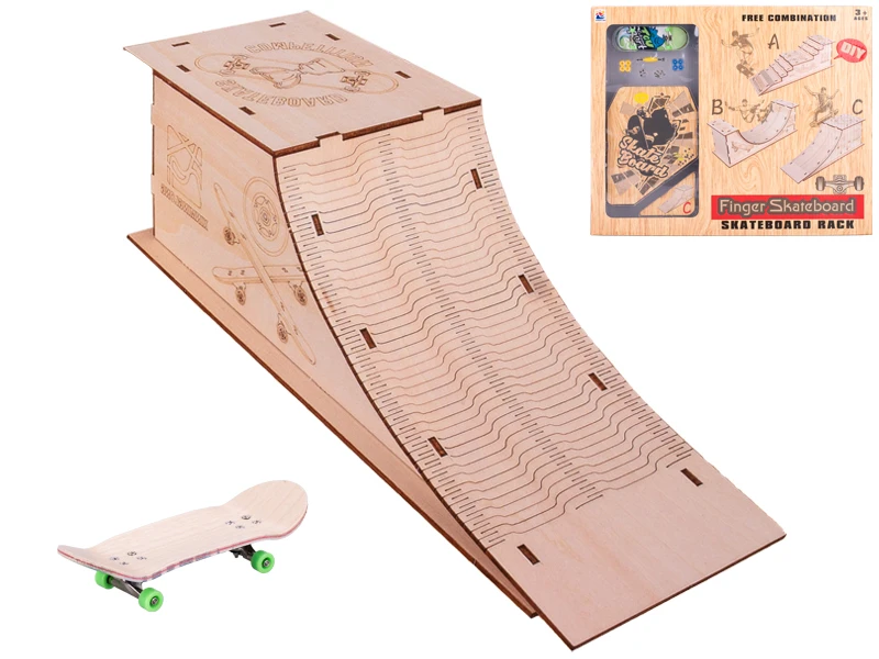 Skateboard 10 cm kov s drevenou rampou