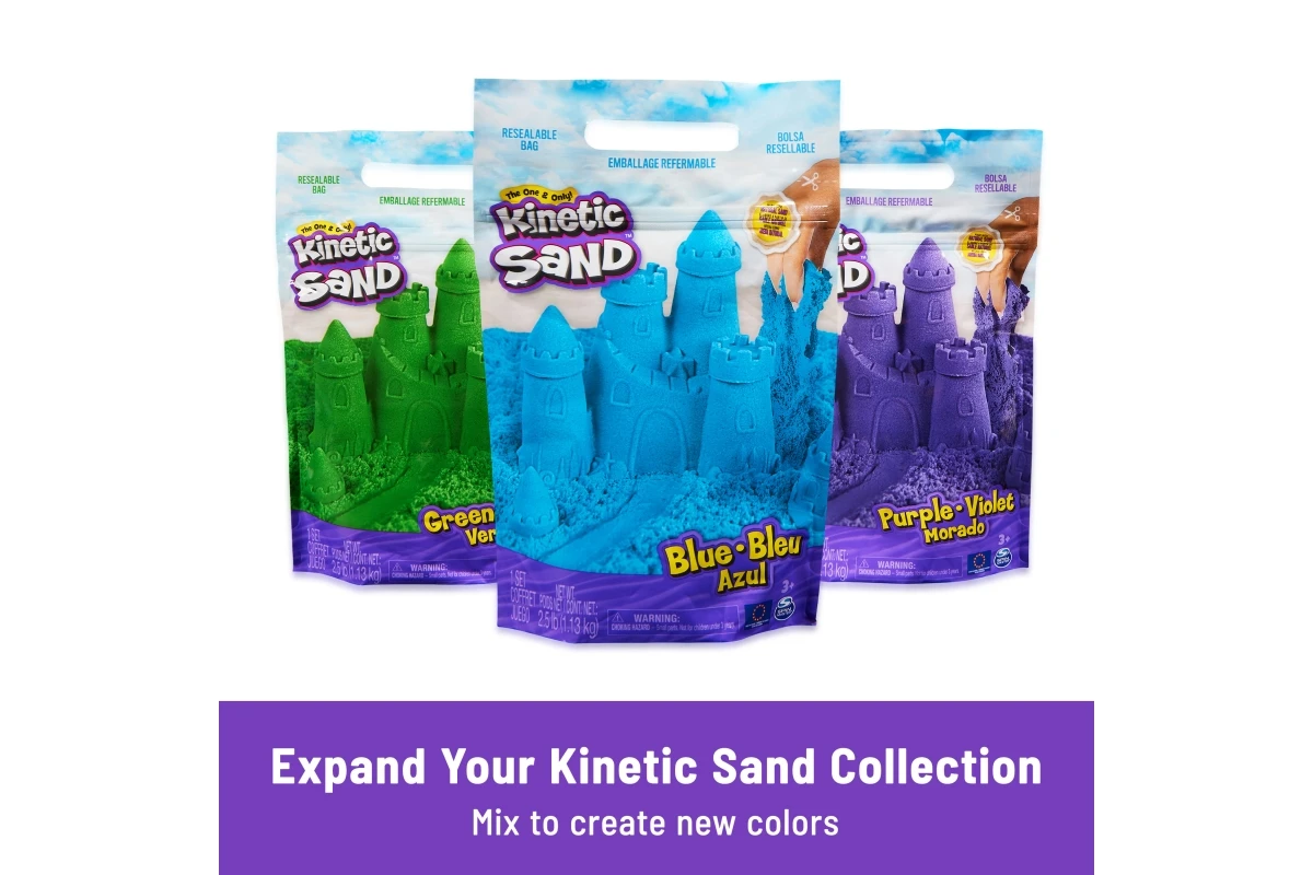 Pokiaľ si s kinetickým pieskom chcete užiť ešte viac zábavy, doplňte do svojej hracej sady veľké vrecká s farebným pieskom (predávajú sa samostatne).