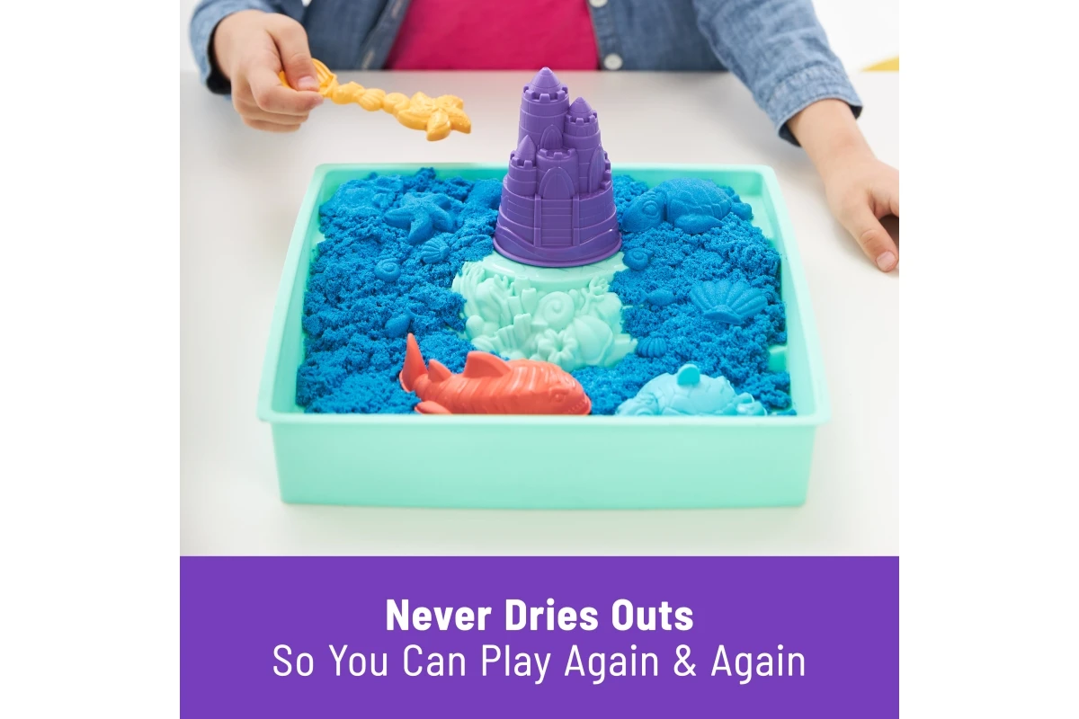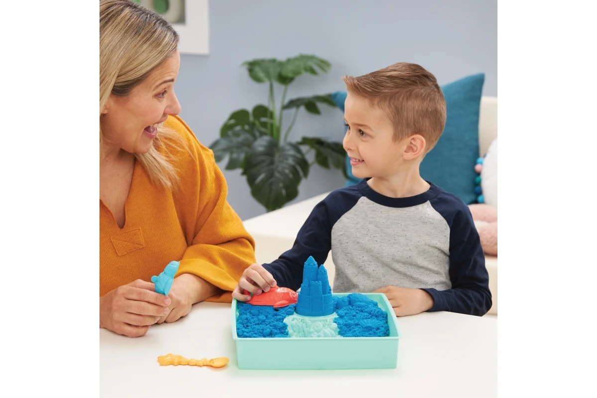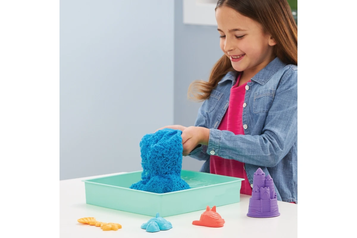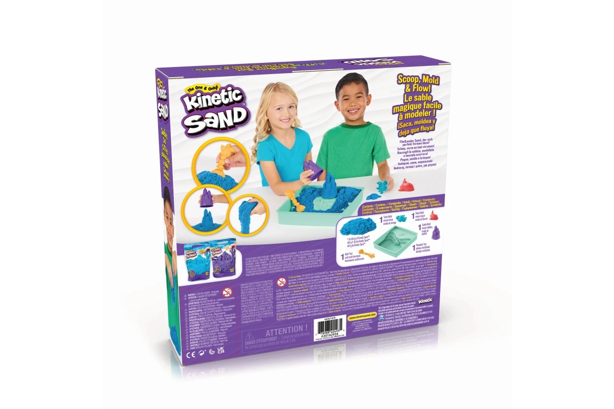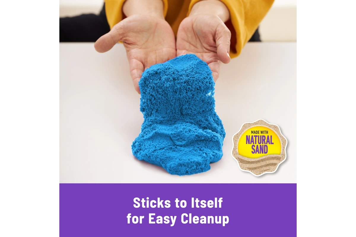 Jedinečné zloženie kinetického piesku umožňuje ho ľahko tvarovať, stláčať a tvoriť z neho čokoľvek, čo si len dokážete predstaviť. Zo 450 gramov modrého kinetického piesku môžete stavať hrady, žralokmi a korytnačkami a na kopanie, naberanie, sypanie a tvarovanie použiť priloženú lopatku. Súčasťou tejto sady kinetického piesku je aj dvojposchodový zásobník na piesok ideálny pre hru v interiéri.