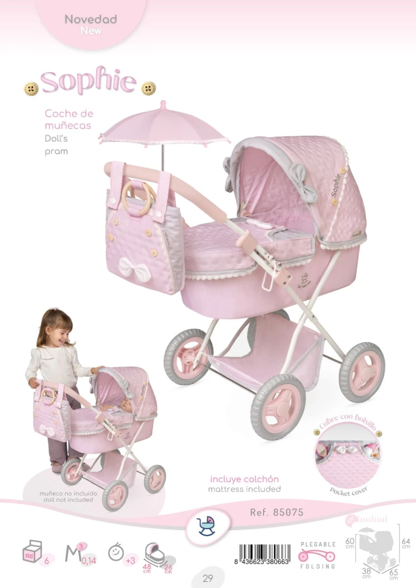 Skladací kočík pre bábiky so slnečníkom a taškou Sophie 60 cm DeCuevas