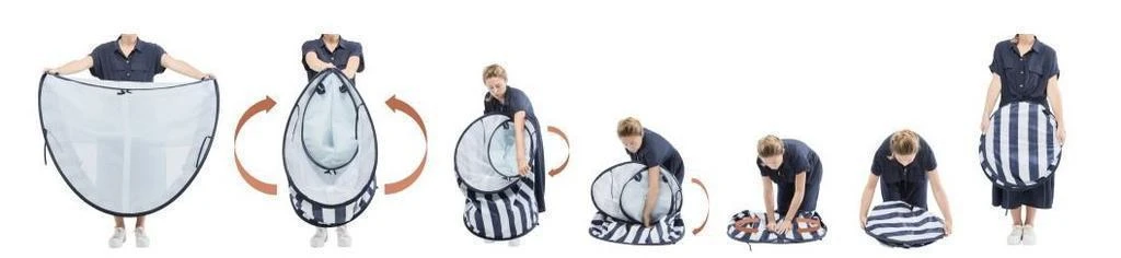 Stan sa ľahko zostavuje a skladá vďaka pop-up systému, je dostatočne veľký aj pre 2 deti. Má veľký otvor vpredu a dve ventilačné okienka vzadu pre optimálnu cirkuláciu vzduchu. Sieťkou v prednej časti je možné celý stan uzavrieť, čím vytvoríte ochranu pred hmyzom počas leta. Dno stanu je nepriepustné. Tento plážový stan je dodávaný s 3 kolíkmi na upevnenie. Stan je veľmi ľahký (<1 kg) a ľahko sa prenáša v taške s pútkami, ktorá je súčasťou.