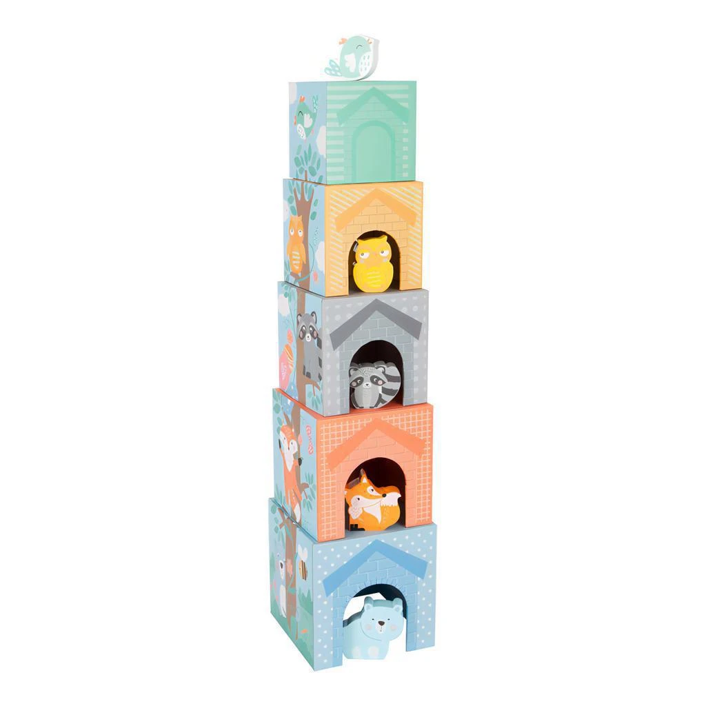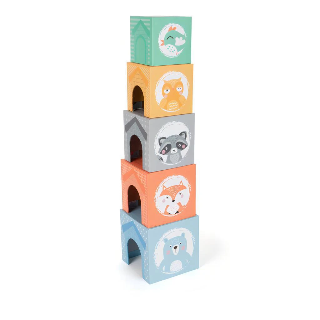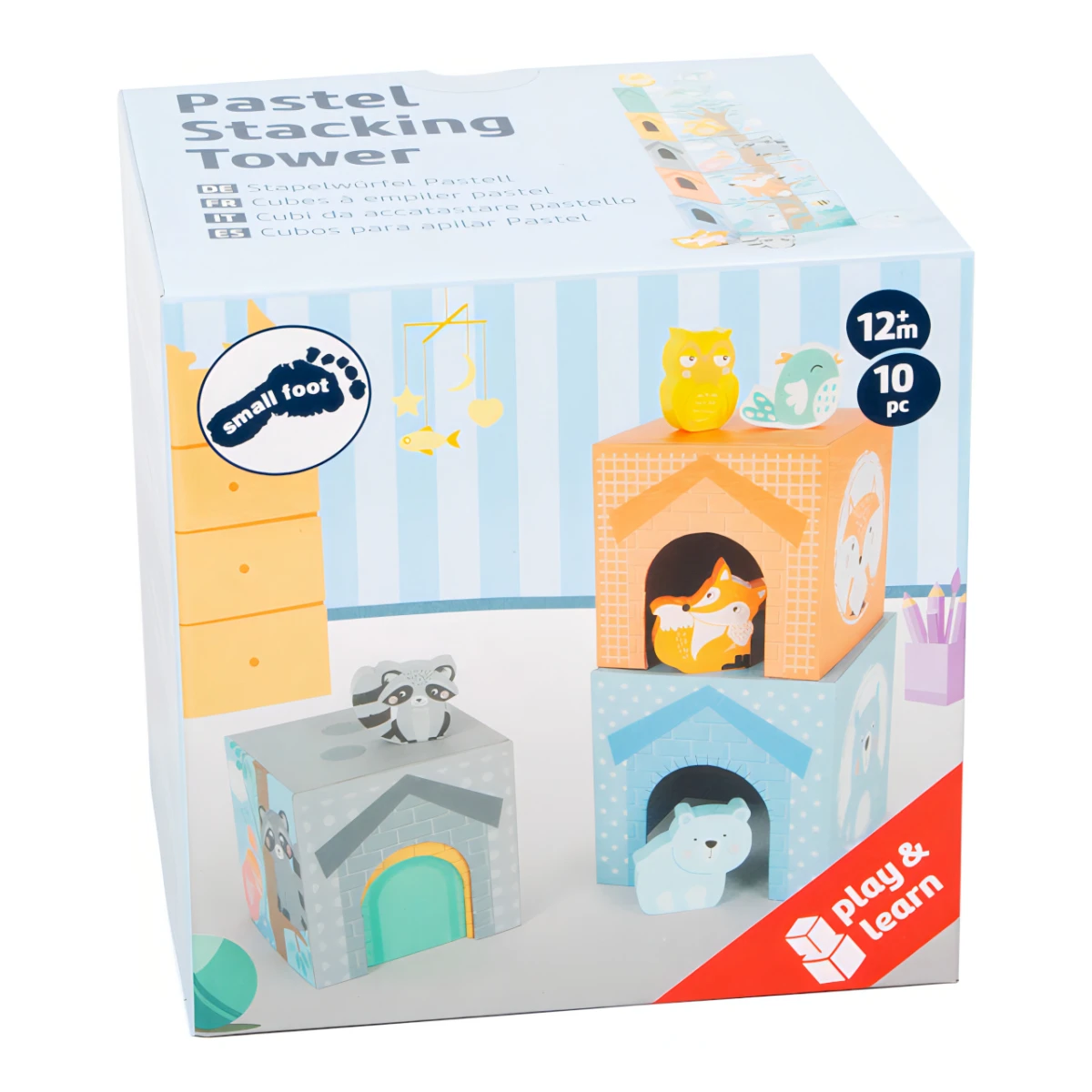 Skladanie je zábava! Päť kociek v trendy pastelových farbách, ktoré majú aj ilustráciu zvieratiek. Len čakajú, až ich začnete skladať na seba!