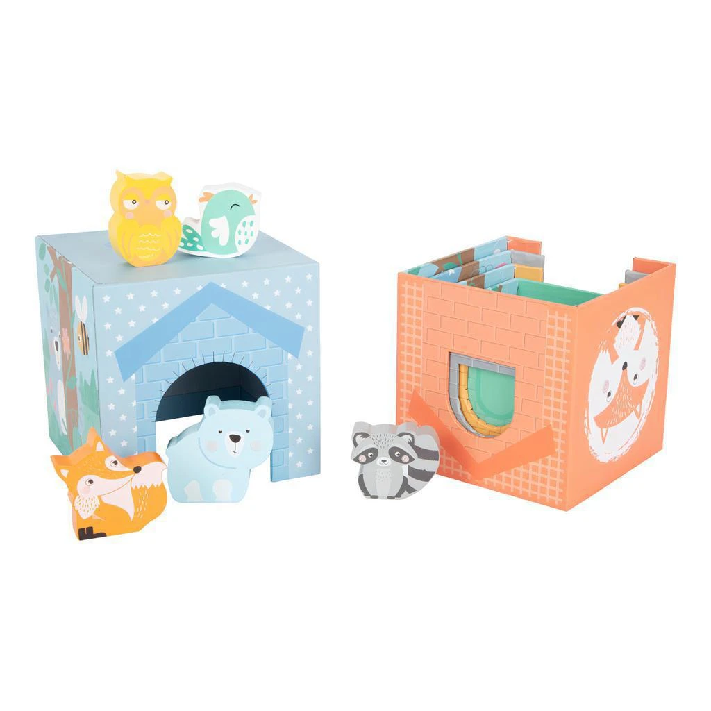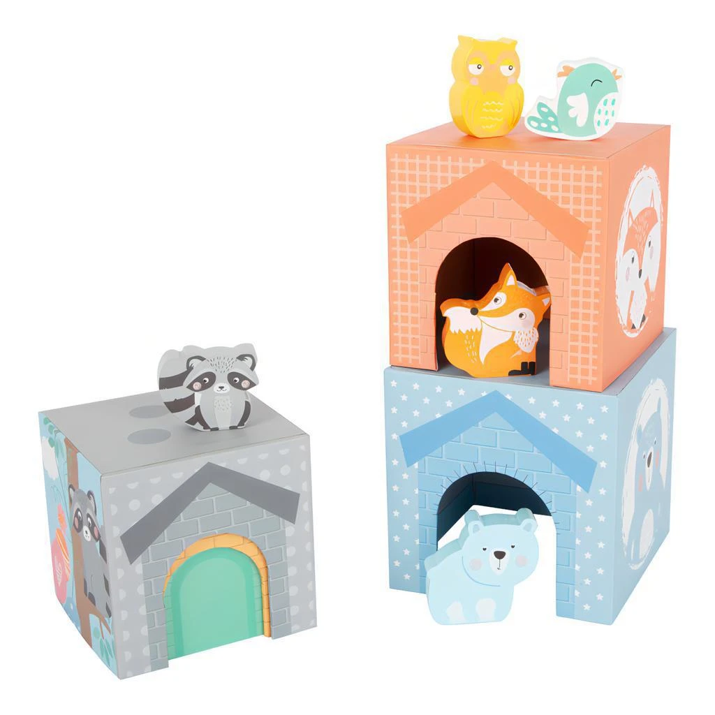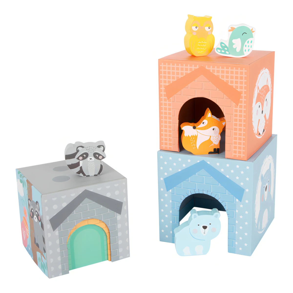 Skladanie je zábava! Päť kociek v trendy pastelových farbách, ktoré majú aj ilustráciu zvieratiek. Len čakajú, až ich začnete skladať na seba!