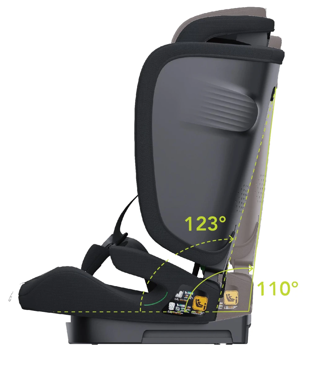 Veľkou výhodou je polohovacia opierka hlavy s rozsahom 23 cm, ktorá sa výškovo nastavuje súčasne s bezpečnostnými ramennými pásmi. Sedačka sa tak ľahko prispôsobí rastu dieťaťa. Široké a pohodlné sedadlo zaisťuje komfort aj na dlhších cestách.