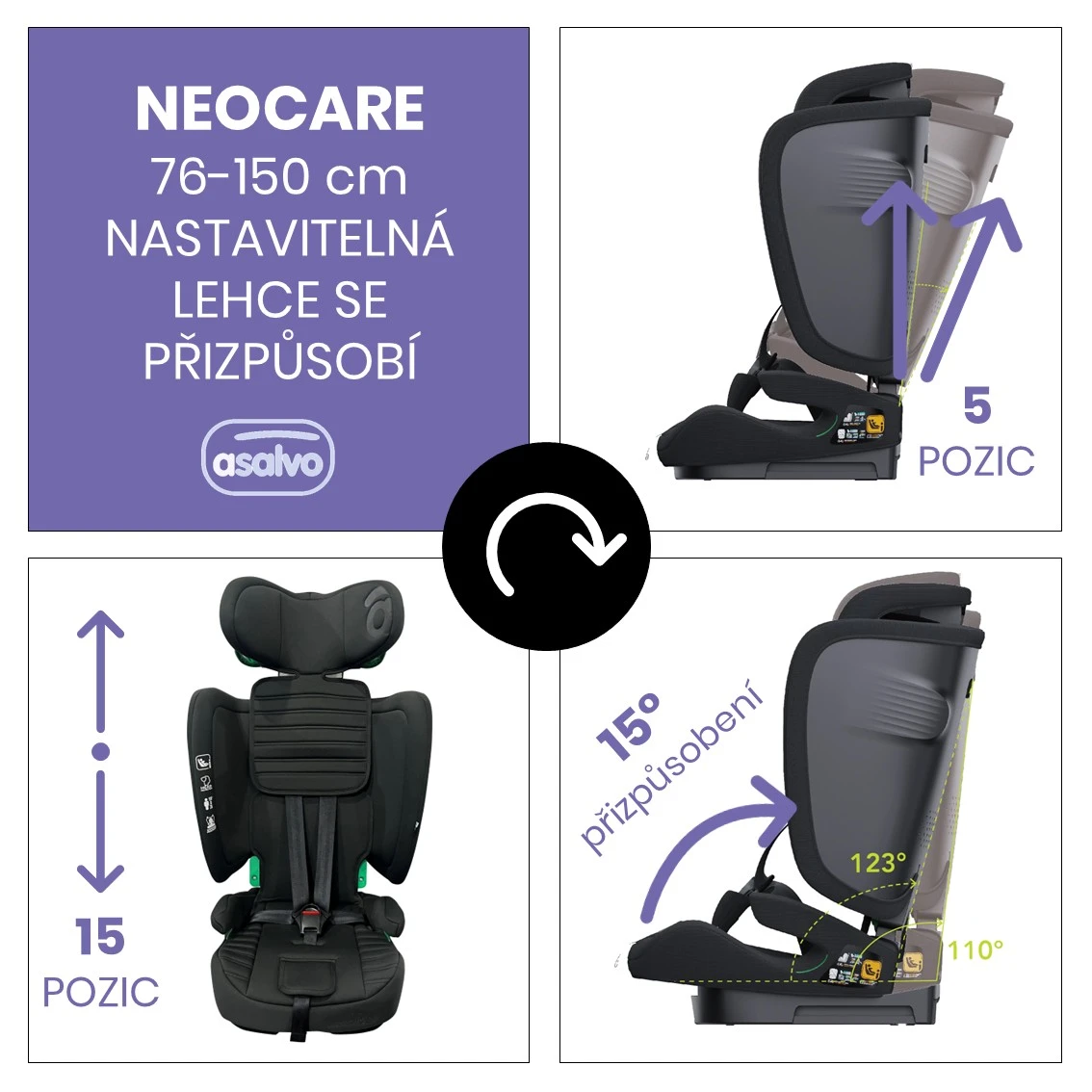 Sklápacia autosedačka Neocare iSize 76-150 cm black Asalvo