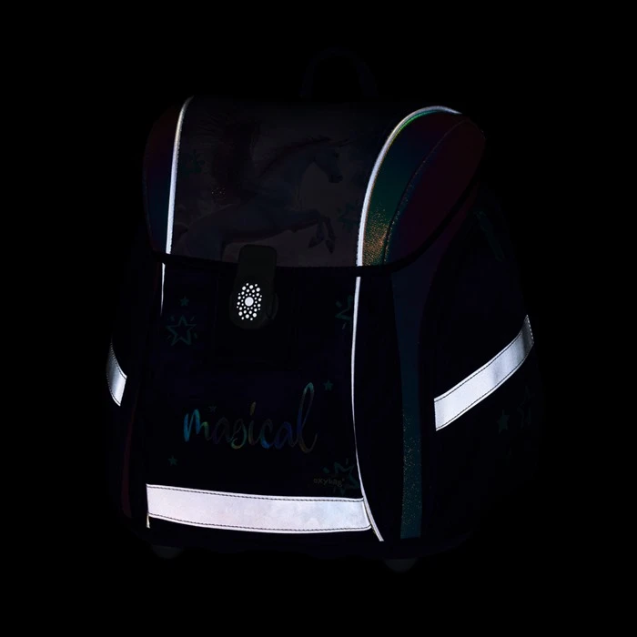 Polstrovaný chrbát a nastaviteľné ramenné popruhy zaisťujú rovnomerné rozloženie hmotnosti a chráni detský chrbát, pričom ľahká konštrukcia minimalizuje záťaž. Kvalitné a odolné materiály spolu s pevnými zipsami zaisťujú dlhú životnosť batohu aj pri každodennom používaní. Batoh je doplnený reflexnými prvkami pre vyššiu bezpečnosť dieťaťa pri ceste do školy a jemný, kúzelný motív Pegasa dodáva batohu rozprávkový a hravý vzhľad, ktorý poteší všetkých malých milovníkov fantázie a okrídlených koní.