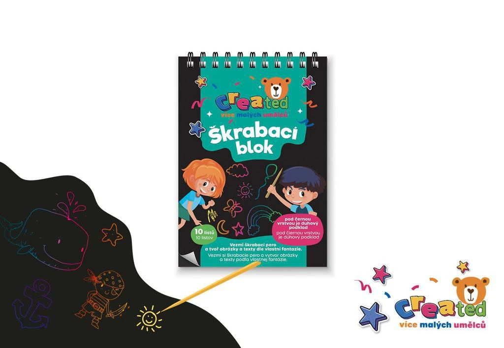 Škrabací/Vyškrabávací notes CREATED farebný 10 listov 10x14 cm