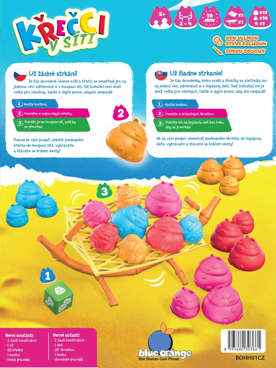 Buďte prvým hráčom, ktorému nezostanú žiadni škrečky! Všetci vaši škrečky musia byť buď v hojdacej sieti, alebo odloženie v krabici.